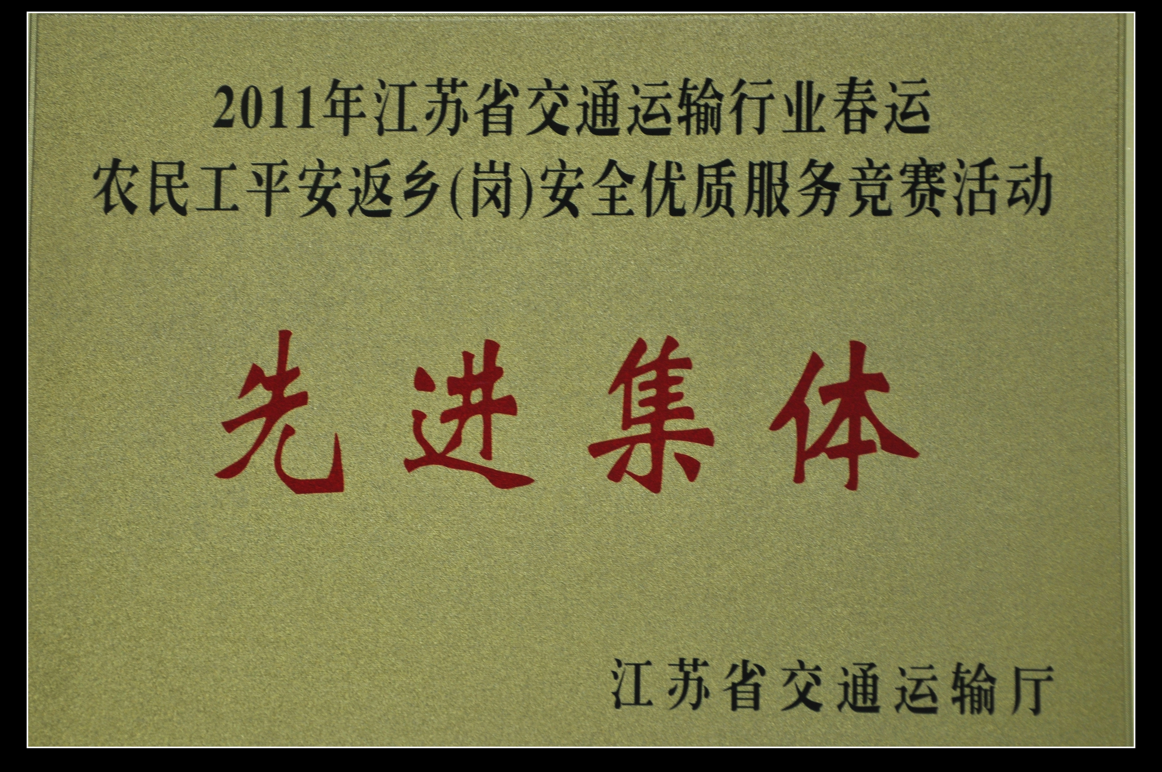 集團公司獲2011年江蘇省交通運輸行業(yè)春運農(nóng)民工平安返鄉(xiāng)(崗)安全優(yōu)質(zhì)服務競賽活動先