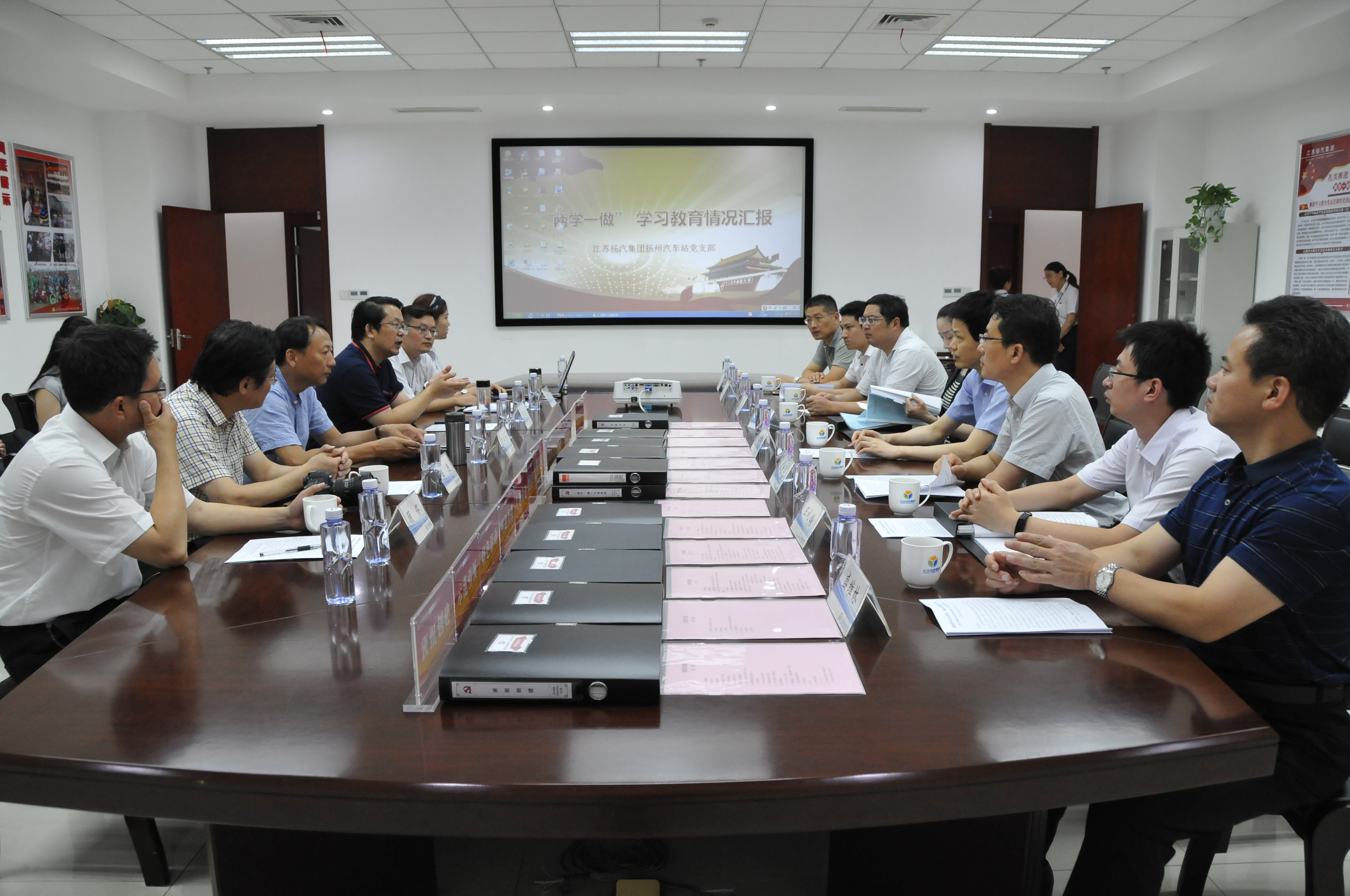 陸部長一行實地查看了揚州站黨支部的黨員活動室,并在活動室與揚州站黨支部的同志進行了座談。揚州站黨支部書記凌國軍,向督察組匯報了揚州站黨支部在“兩學一做”推進過程中,如何圍繞企業(yè)轉(zhuǎn)型升級開展黨建工作的體會和成績。督查組還認真查看了支部工作臺賬資料。督察組表示,揚州站黨支部在“兩學一做”學習教育過程中,活動豐富、臺賬健全、效果明顯,看到基層支部能將“兩學一做”工作這樣抓實做細感到非常欣慰。