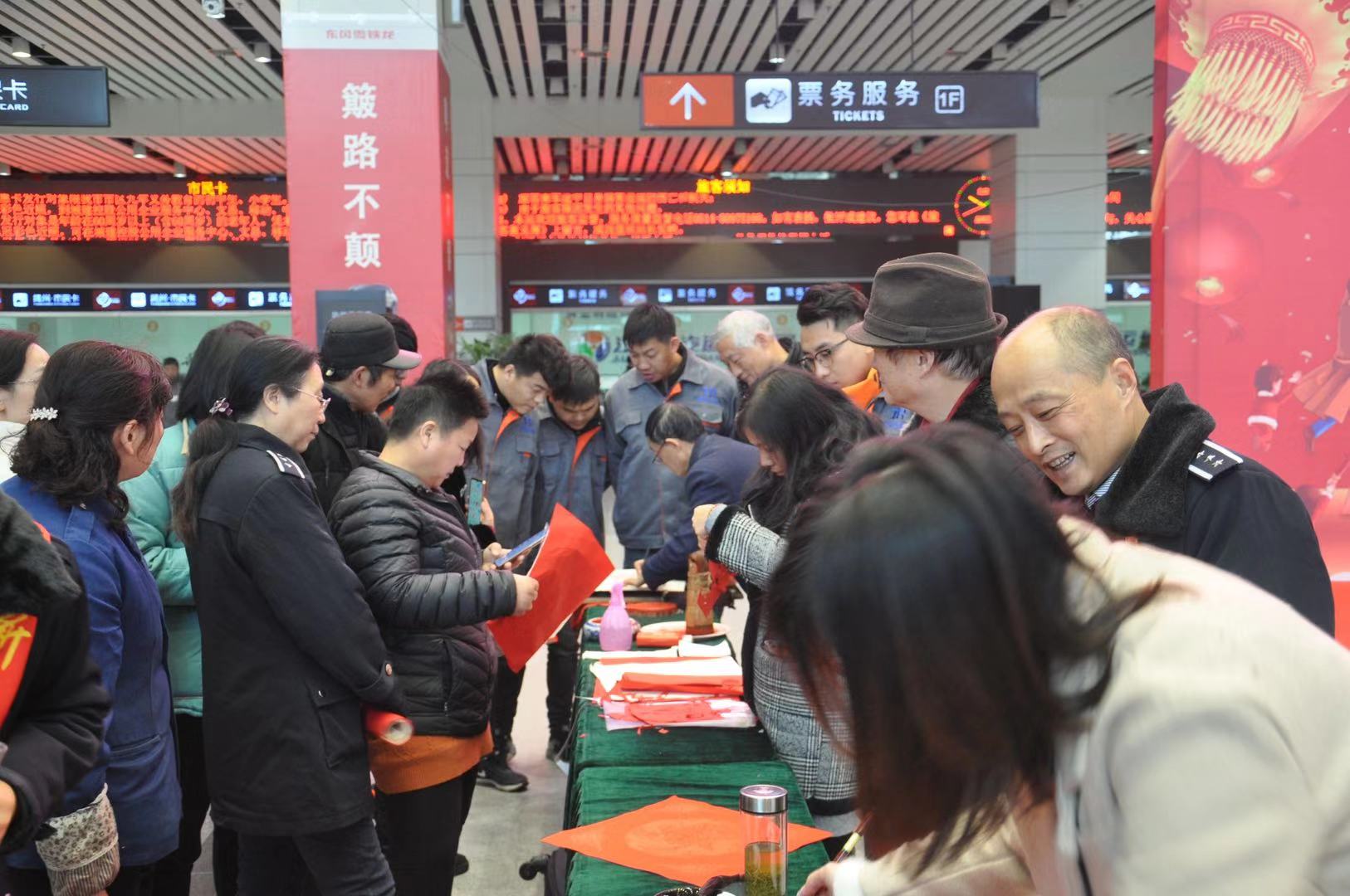 活動(dòng)現(xiàn)場,揚(yáng)州市書法協(xié)會(huì)、剪紙協(xié)會(huì)、揚(yáng)州汽車站的志愿者和旅客們進(jìn)行了書法、剪紙創(chuàng)作送祝福的互動(dòng),在這寒冷的冬季,為歸鄉(xiāng)的旅客送去溫馨的祝福,讓旅客“溫暖相伴·幸;丶”。