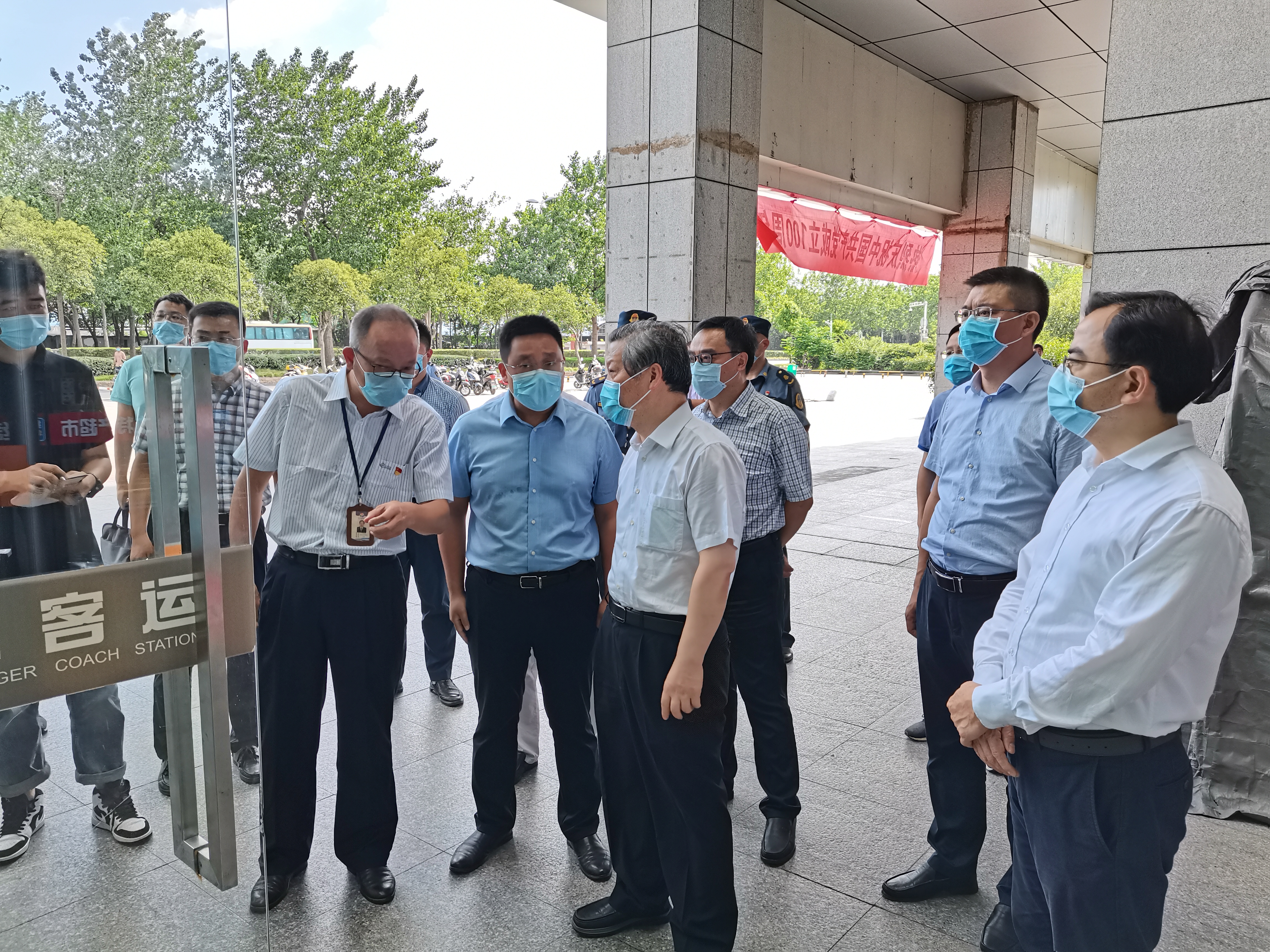 7月23日下午,市委副書記、統(tǒng)戰(zhàn)部部長孔令俊帶隊來汽車東站檢查疫情防控工作,市人大常委會副主任范天恩、廣陵區(qū)委書記朱勇、區(qū)委副書記李斌、副區(qū)長葉浩等領(lǐng)導陪同檢查。