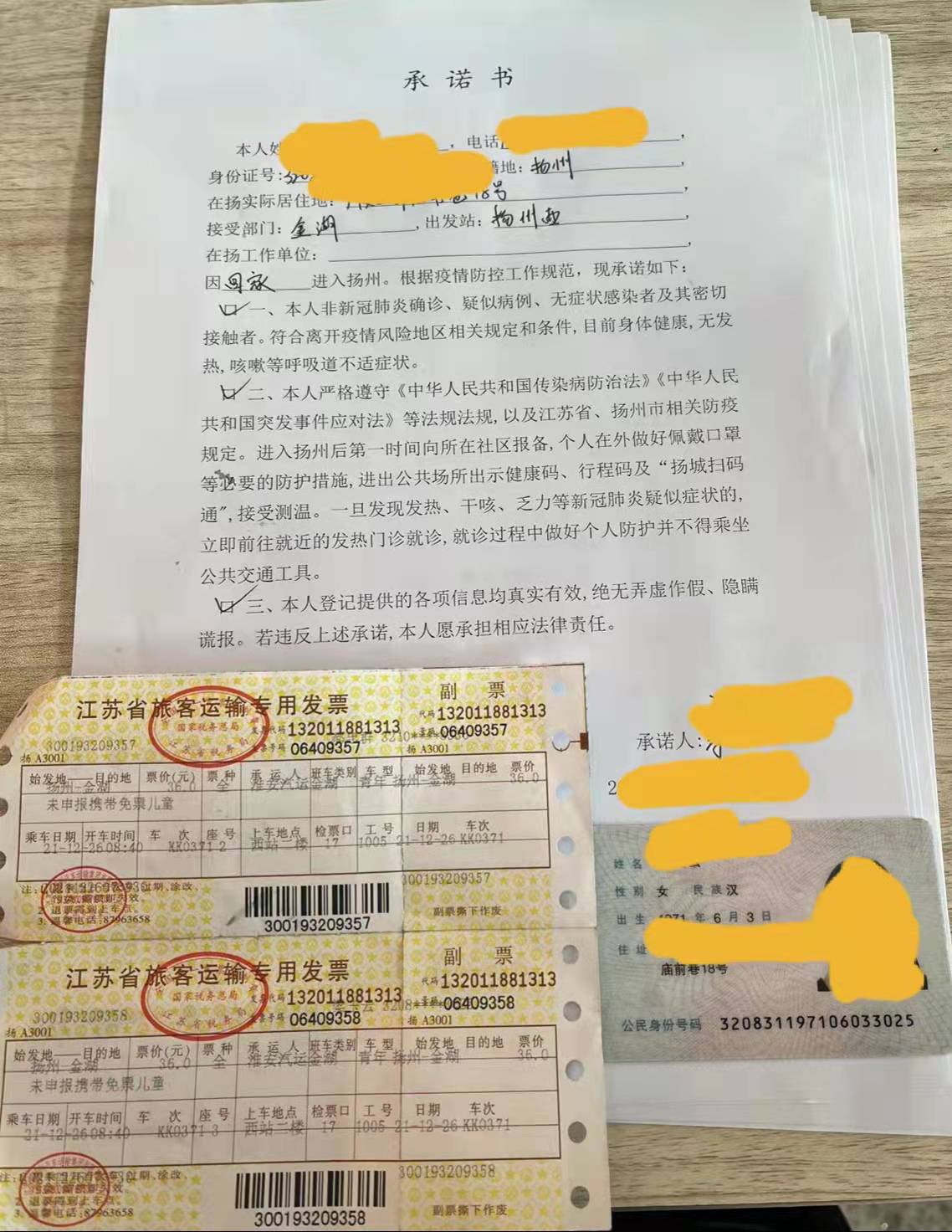由于情況特殊,但也不能違反疫情防控要求。∵@可怎么辦呢?黃建軍從這名旅客提供的個(gè)人物件中,發(fā)現(xiàn)了幾張往返車票,通過車票拼湊出了她十四天內(nèi)的行程,僅往返于揚(yáng)州和金湖兩地,并未到過疫情重點(diǎn)區(qū)域。