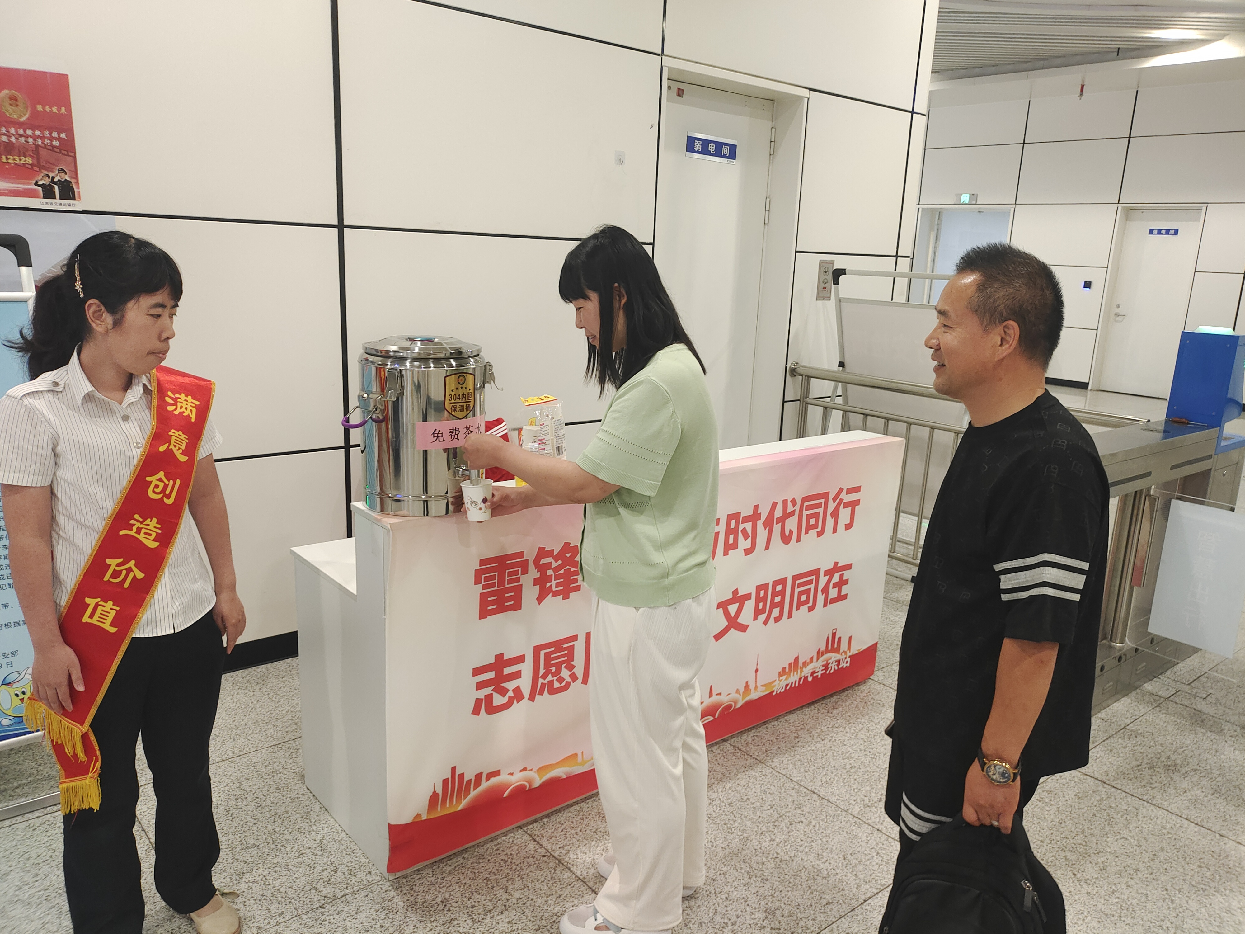 隨著夏季高溫的到來,為給旅客提供便民溫馨的服務,營造舒適旅途,車站工作人員分別在揚州汽車站候車大廳、揚州東站進站口、江都汽車站服務臺設置茶水臺,精心準備了大麥茶、涼茶以及防暑降溫藥品等,黨員同志們更是發(fā)揮帶頭作用,通過雷鋒車將茶水服務實現(xiàn)了移動化,為旅客們帶來身體上的清涼,讓他們感受到心靈上的溫暖。
